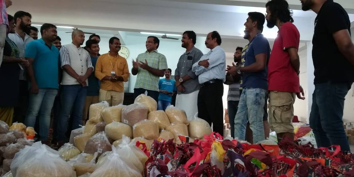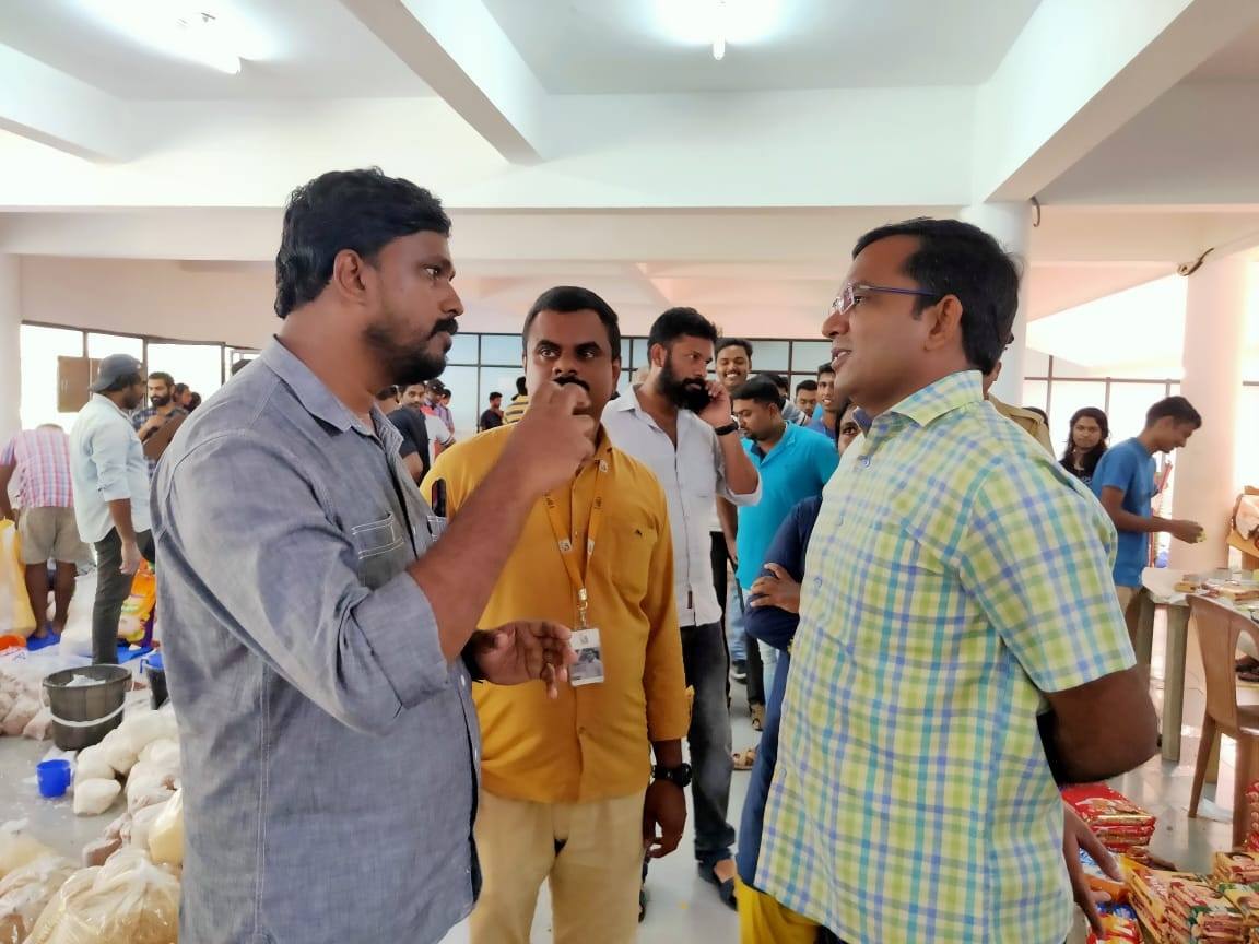 District collector Sri K Gopalakrishnan IAS visited Prathidhwani's Flood Relief Collection Centre on 15th August 2019. Shri Sreevalsan S, (Secretary- Registrar Technopark) was also present during the occassion when the collector expressed his gratitude for the great work towards the flood relief activites carried out at Prathidhwani's collection centre at Technopark Club. The collector appreciated Prathidhwani's effort for collecting and sending 8 loaded vehicles full of relief materials to multiple camps across the affected regions.