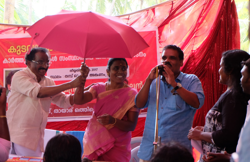 അട്ടപ്പാടിയിലെ ആദിവാസിസ്ത്രീകളുടെ സ്വയംതൊഴില് സംരഭമായ കാര്ത്തുമ്പിക്കുടകളുടെ സംസ്ഥാനതല വിതരണോദ്ഘാടനം കേരളത്തിൻറെ സാംസ്കാരിക - പട്ടിക ജാതി ക്ഷേമ വകുപ്പ് മന്ത്രി ശ്രീ എ കെ ബാലനിൽ നിന്നും ഐ ടി ജീവനക്കാരുടെ സംഘടന ആയ പ്രതിധ്വനിയുടെ വൈസ് പ്രസിഡന്റ് ശ്രീമതി മാഗി വൈ വി ഏറ്റുവാങ്ങി നിർവഹിച്ചു.