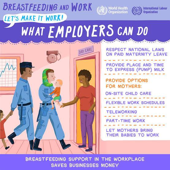 ജോലിക്കാരായ മുലയൂട്ടുന്ന അമ്മമാർക്ക് വലിയൊരു സൗകര്യമാണു ബ്രെസ്റ്റ് പമ്പുകൾ. ജോലിക്കിടയിൽ ഓഫീസിൽ നിന്ന് തന്നെ ബ്രെസ്റ്റ് പമ്പ് ഉപയോഗിച്ച് ശേഖരിക്കുന്ന പാൽ, ഫ്രിഡ്ജിൽ സൂക്ഷിച്ചു പിന്നീട് സ്വന്തം കുഞ്ഞിനു തന്നെ നൽകാനാകും. എങ്കിലും കേരളത്തിലെ ജോലി ചെയ്യുന്ന സ്ത്രീകൾടെ ഇടയിൽ ഇനിയും ഇത് വ്യാപകമായിട്ടില്ല. പാൽ സൂക്ഷീക്കുന്നതിനുള്ള ശീതികരണ സംവിധാനം ഒന്നും എല്ലൊ ഓഫീസിലും ലഭ്യമല്ലാത്തതിനാൽ ആണിത്. WHO യുടെ ഈ വർഷത്തെ മുലയൂട്ടൽ വാര സ്ലോഗനുകളിൽ ഒന്ന് "പേരന്റ്സ് ഫ്രെണ്ട്ലി വർക്ക്പ്ലേസ്" എന്നാണ്. അതിന്റെ ഭാഗമായി ലാക്റ്റേഷൻ പോഡുകൾ നമ്മുടെ ഓഫീസുകളിലും സ്ഥാപിക്കപ്പെടുമെന്ന് പ്രത്യാശിക്കാം.