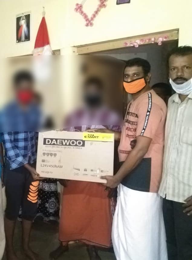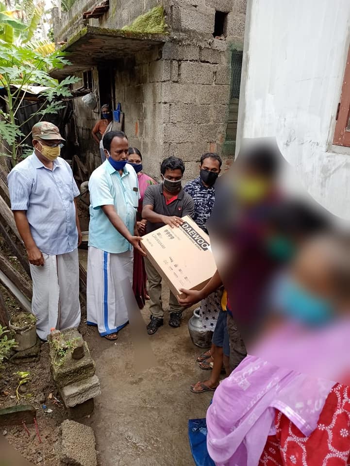 സർക്കാർ സ്കൂളുകളിൽ കുട്ടികളെ പഠിപ്പിക്കുന്ന ടെക്കികളുടെ കൂട്ടായ്മയായ 'പ്രതിധ്വനി മൈ ഗവണ്മെന്റ് സ്കൂൾ' ന്റെ നേതൃത്വത്തിലാണ് TV നൽകുന്നത്. ബിനീഷ് നാഗൂർഖനി, ഹാഷിം, ജോഷി എ കെ, അജിത് അനിരുദ്ധൻ, മുഹമ്മദ് അനീഷ് എന്നിവരുടെ നേതൃത്വത്തിലായിരുന്നു വിതരണം.