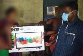 As a part of the First Bell challenge by Prathidhwani, an initial set of 4 TV sets were distributed yesterday for children who don't have means of online/ virtual education.
