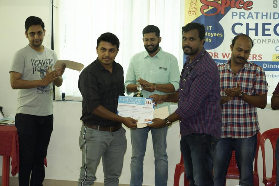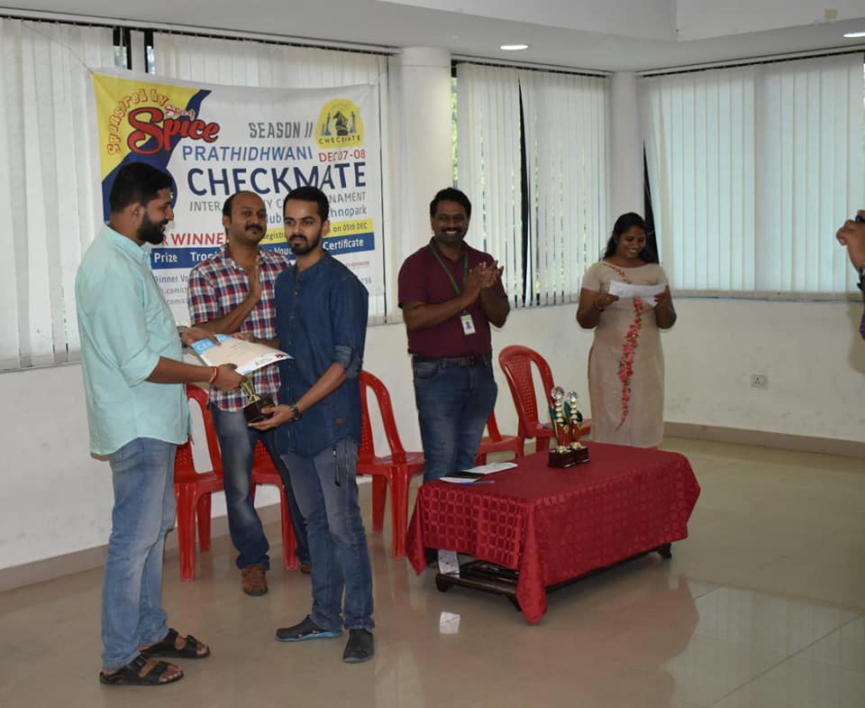 The valedictory function was attended by Capablanca chess school Manager Sri Vijin Babu S, Slice Of Spice Partner Suresh, “Prathidhwani Checkmate Season II- 2019” Convener Saneesh KP, Joint Convener Sreeni Dony, Prathidhwani President Raneesh A R, Secretary Vineeth Chandran, Joint secretary Vishnu Rajendran, Treasurer Rahul Chandran, Participants and their parents, IT employees and Prathidhwani members.