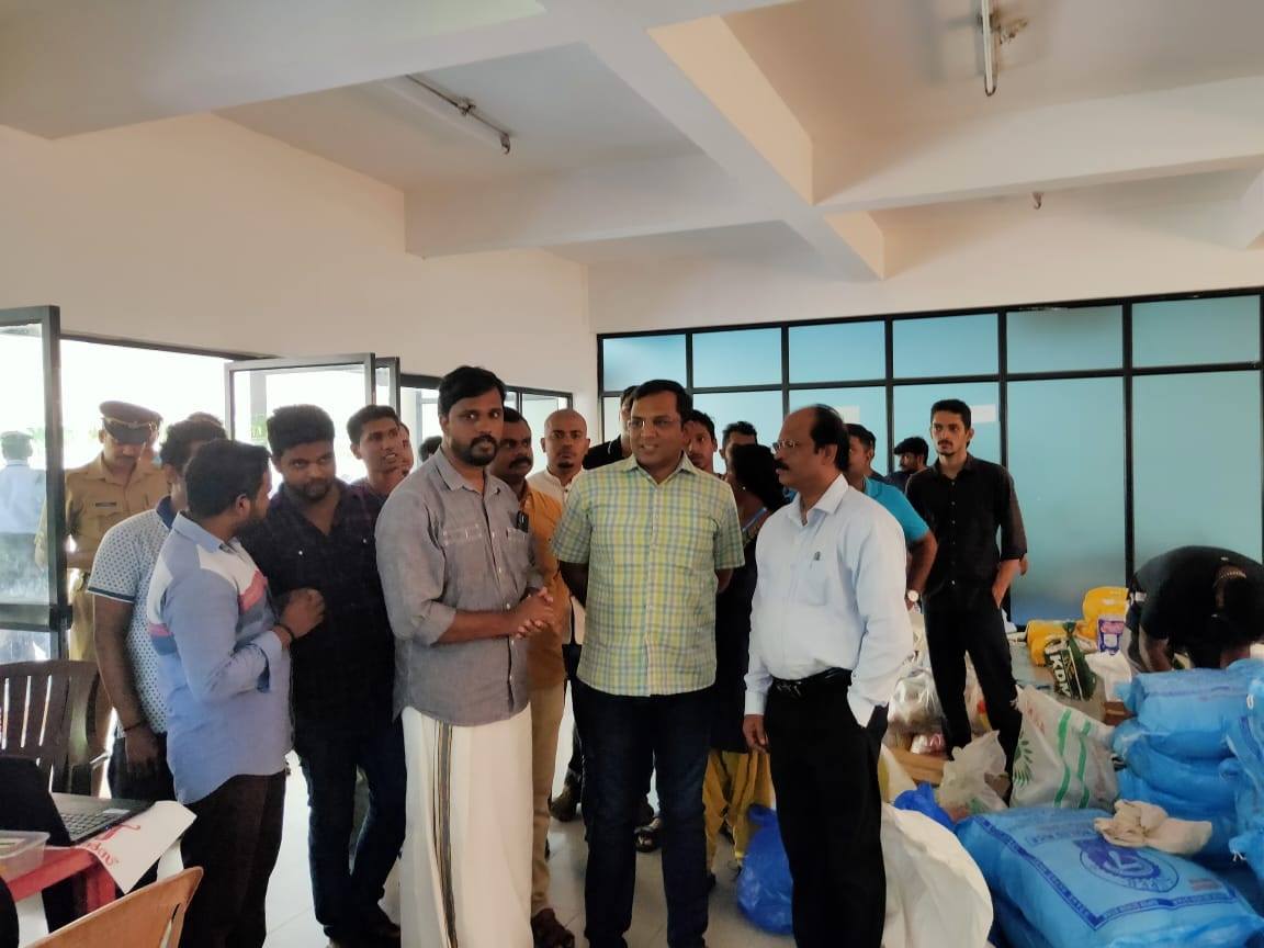 District collector Shri K Gopalakrishnan IAS visited Prathidhwani's Flood Relief Collection Centre on 15th August 2019